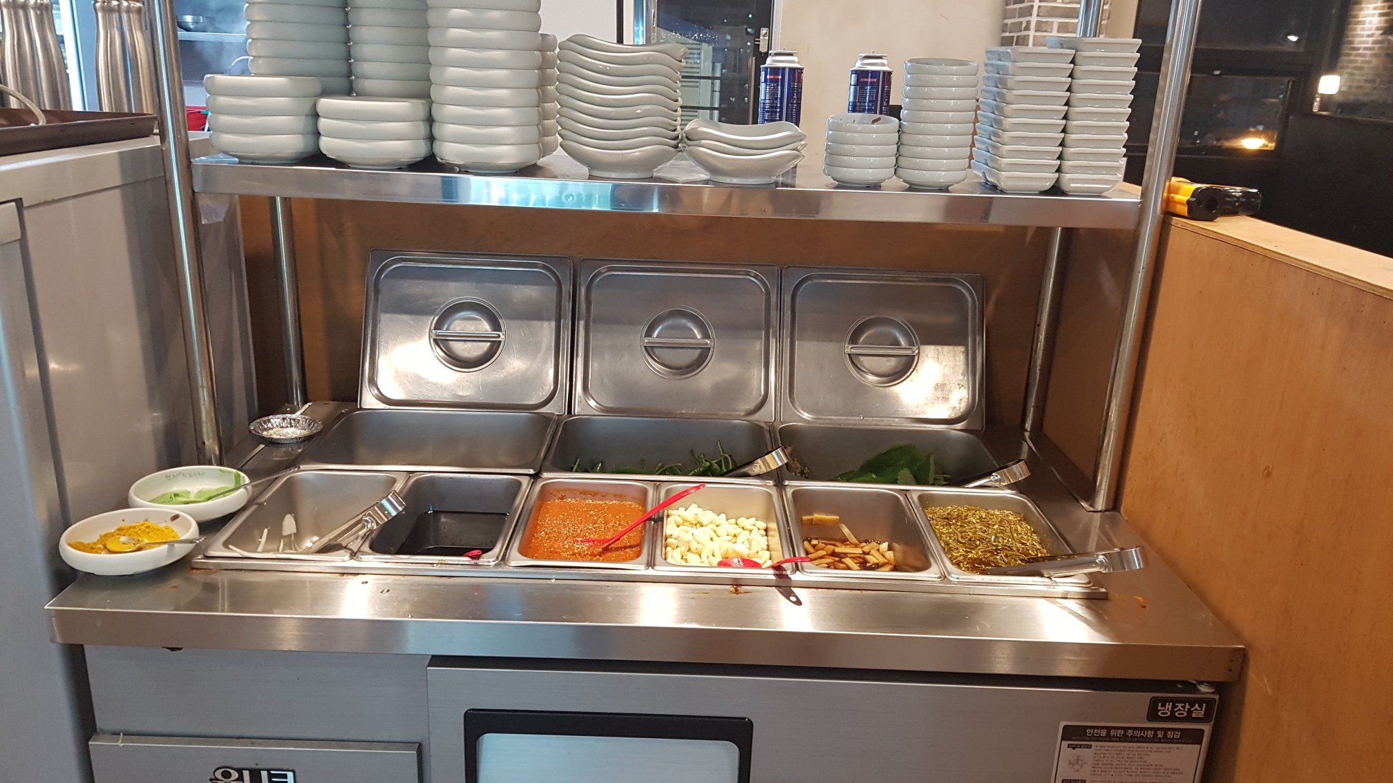 셀프바가 따로 마련되어 있어서 추가로 필요한 야채나 밑반찬은 셀프로 더 가지고 올 수 있어요